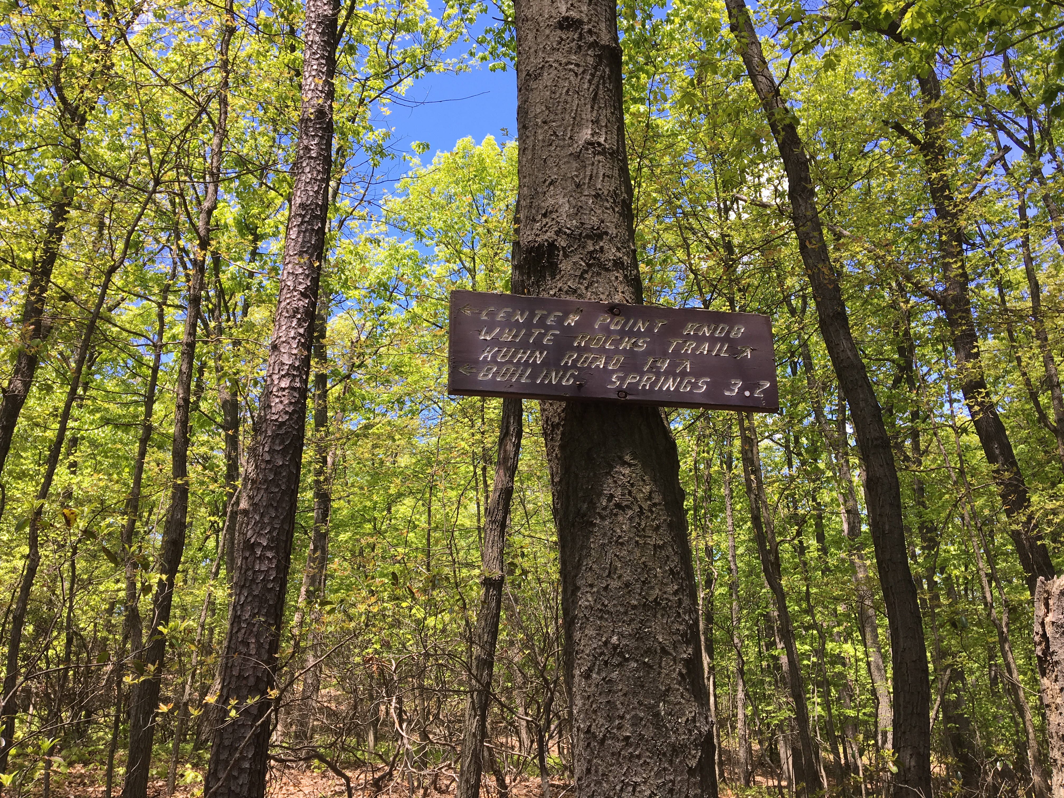 So I climbed up the next hill, coming to the original center point of the trail called Center Point Knob, which had the closest thing to a view, that I’ve had for days.
