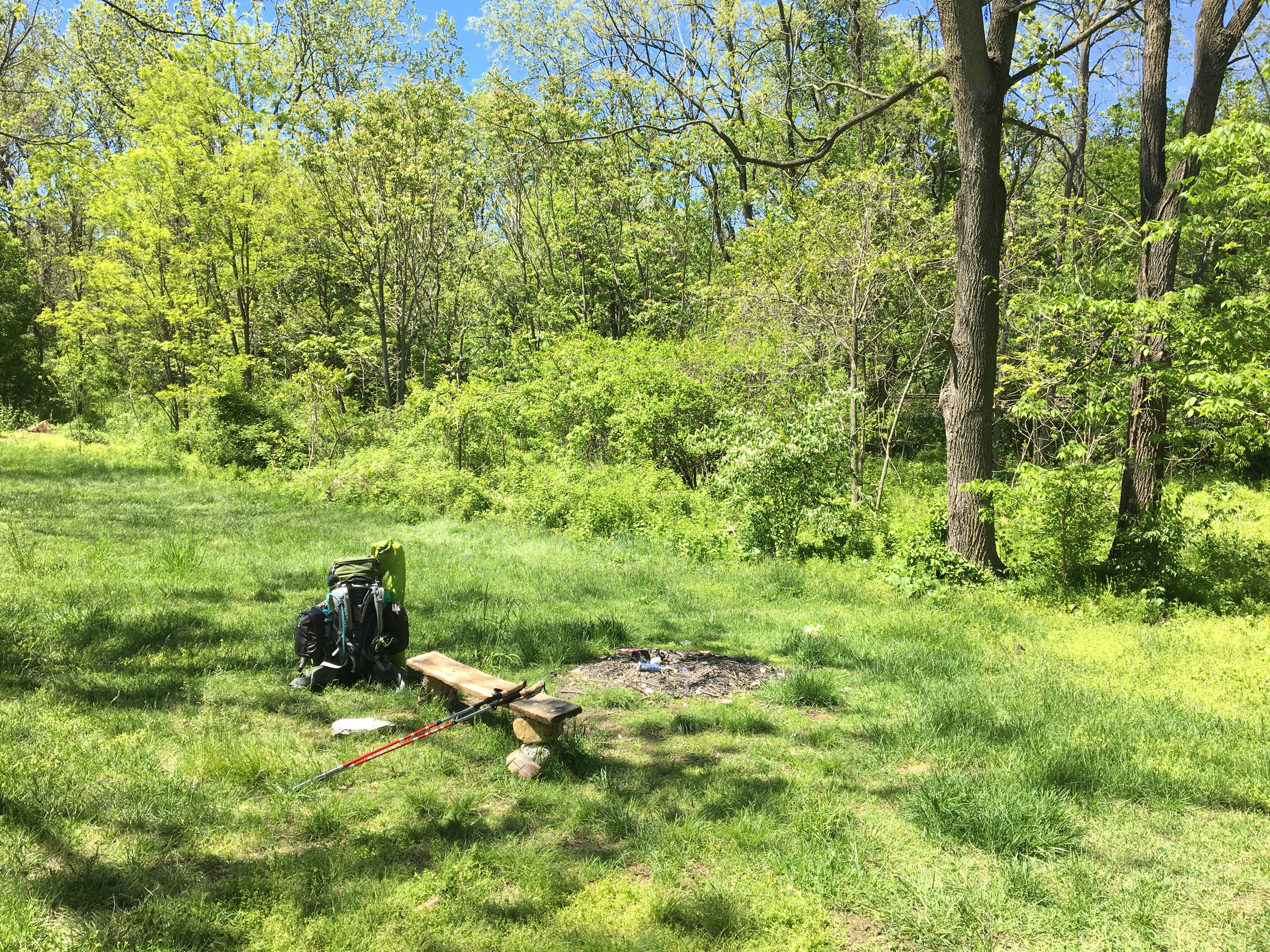 And then there it was: the infamous Backpacker’s Campground! The guidebook says that there are public bathrooms, so I had expected running water and toilets. Again, one should read the details in the guidebook. Apparently there is a portapotty ‘in season” (read “not now”). Basically, it’s a grassy clearing between the corn fields and train tracks. And no real hammocking options.