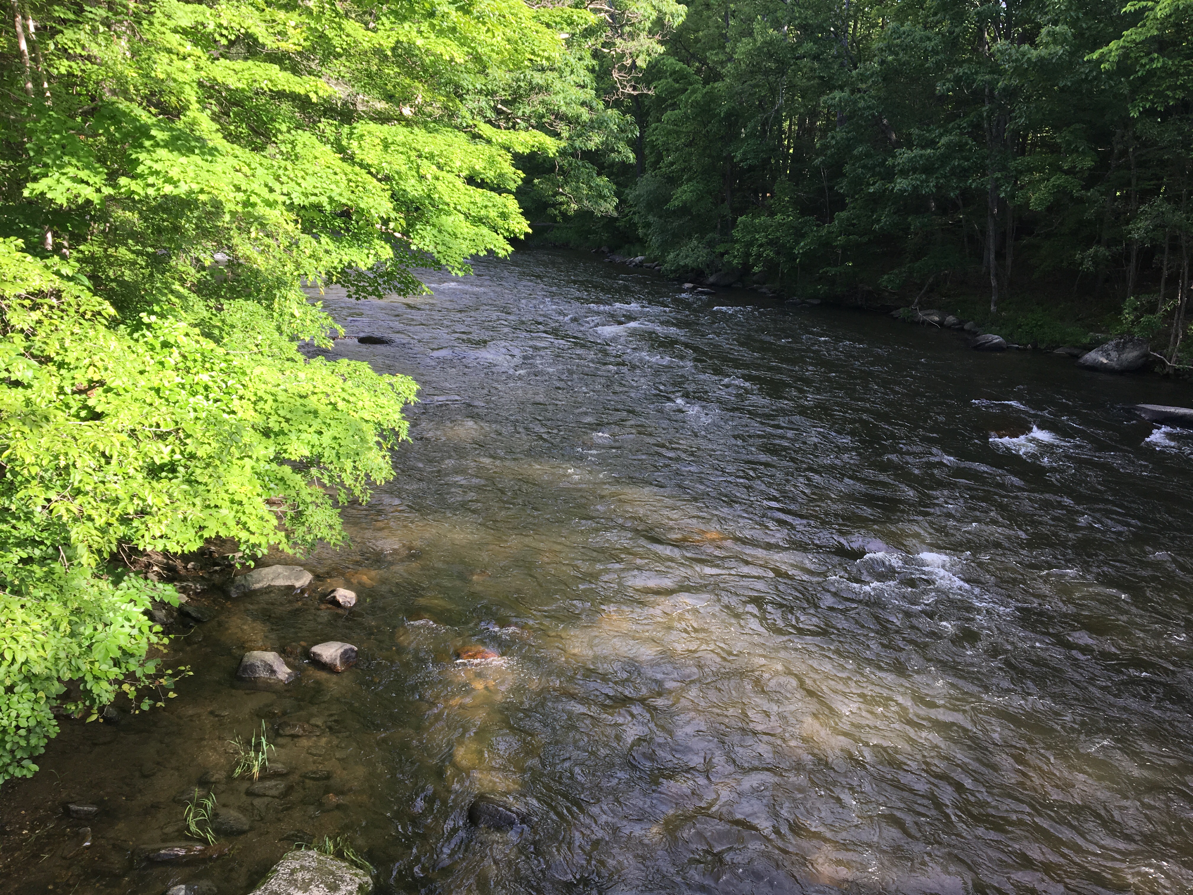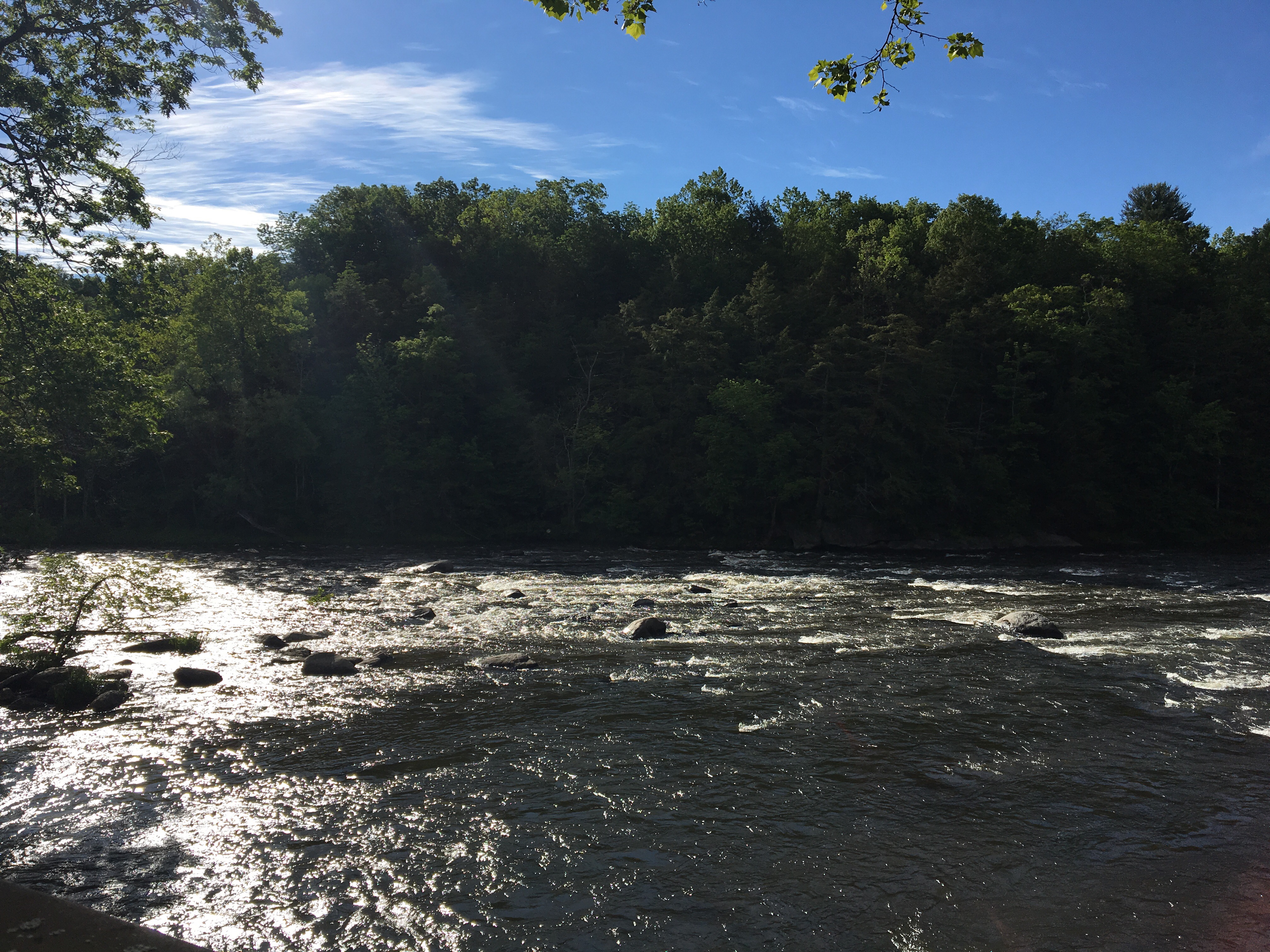 The Ten Mile River runs into the Housatonic River right near camp. The trail crosses it on a bridge, then runs north along the Housatonic.  It was a beautiful and gentle walk, for the first half hour. Then it started climbing Schaghticoke Mountain, getting pretty close to 1300 ft. A serious climb, and I was forced to take it slow. A NOBOer passed me at one point, saying, “it’s great to be getting back into the mountains.” I was feeling a little less positive about that development. Each new state had brought unique, new challenges. CT apparently has some serious climbs. I took more rest breaks, more frequently, than I have since the early days. I also think maybe my hiker hunger might be kicking in, cuz I was really interested in my snacks today. Really, really interested. But there were some excellent views, which made it easier to decide to rest.