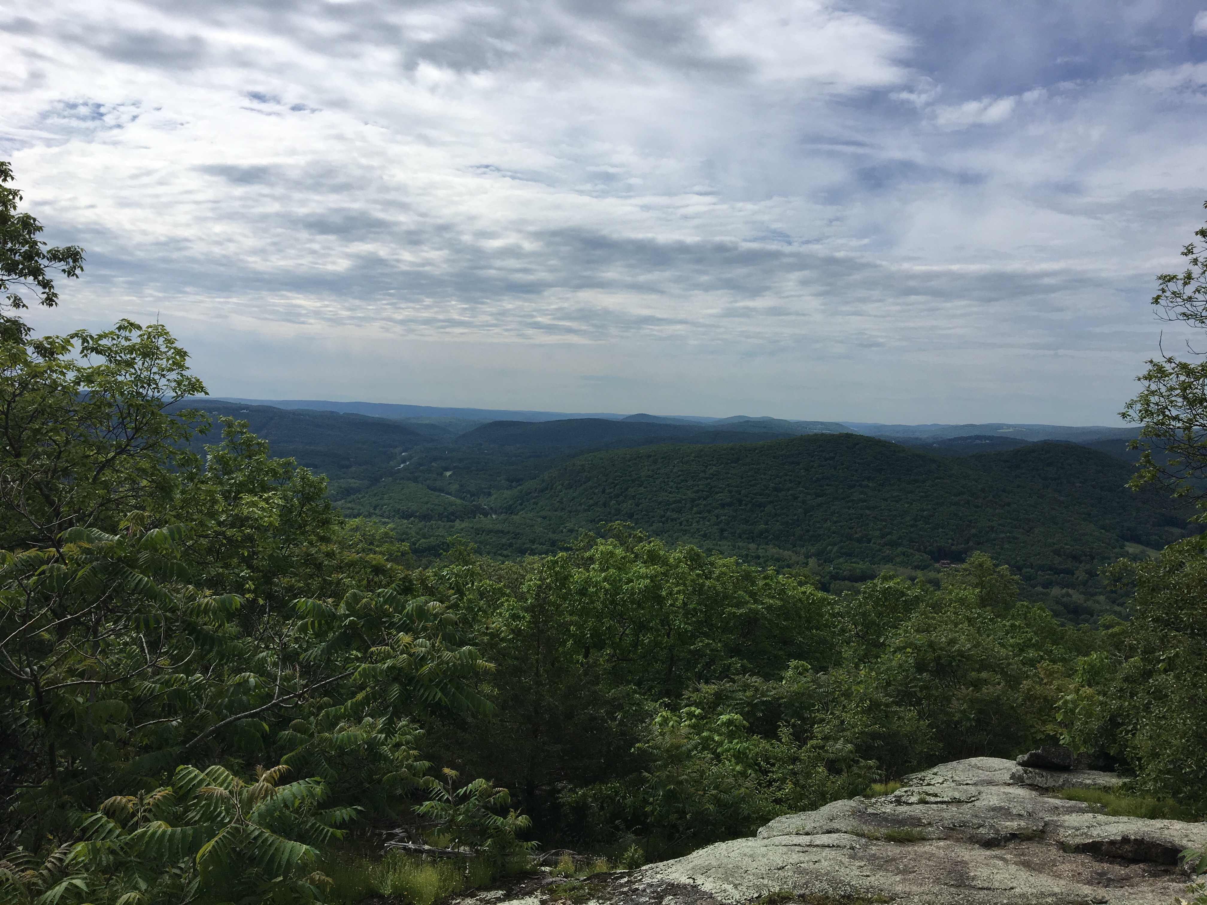 It took me most of the morning to get up and over Schaghticoke Mountain, catching up to a couple of section hikers, then losing them over and over. There was a cool viewpoint looking south, where I took off my pack and rested. And ate snacks. They were very good.