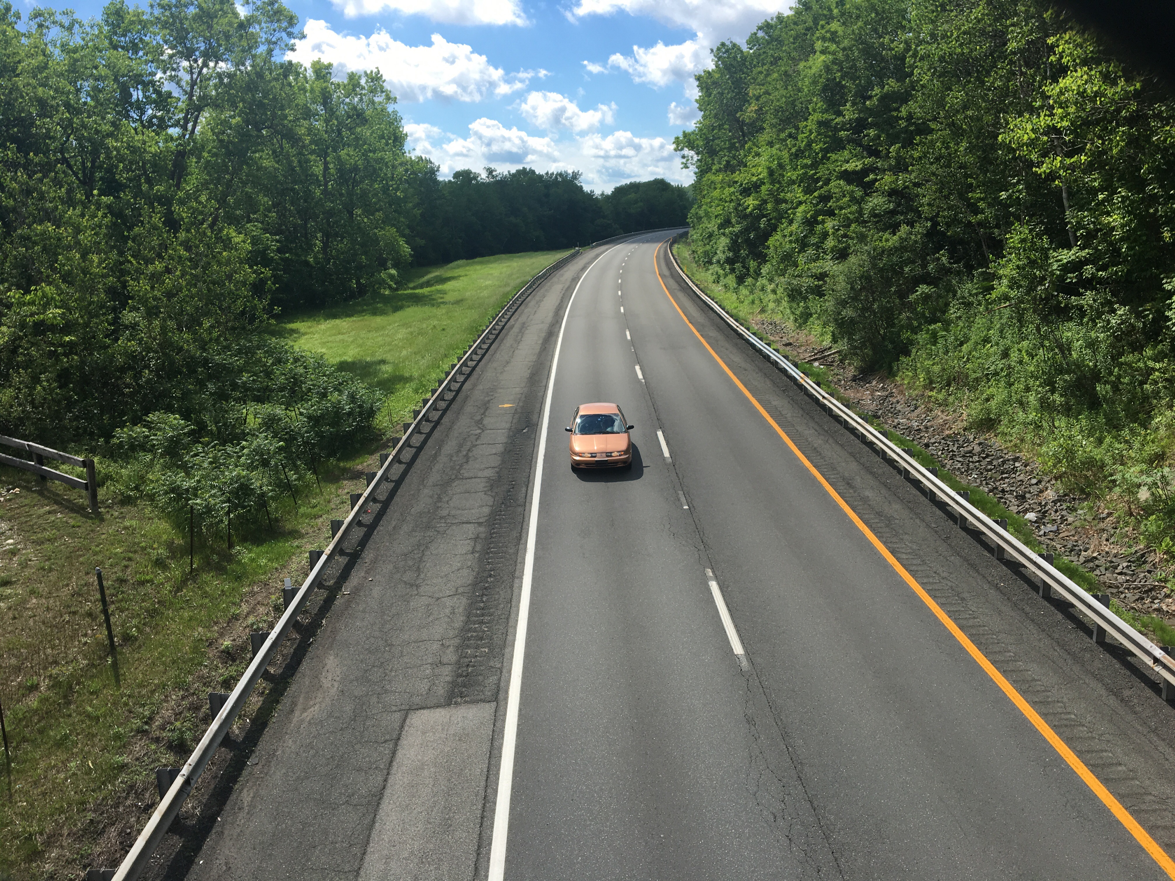 There’s not much to say about the hike this morning, except the weather was very nice. Before I knew it the traffic noise of RT 90 was coming through just ahead, and the path dropped rapidly down some switchbacks, and I was at the infamous Appalachian Trail footbridge across the Mass Pike. I was seriously considering trying a FaceBook live video, but the traffic noise was pretty loud, and I hadn’t researched how to do it ahead of time (I’m sure that FB has made it a single push button thing, and someone will give me instructions! For a computer/UX guy, I am surprisingly technophobic! Especially around cell phones).