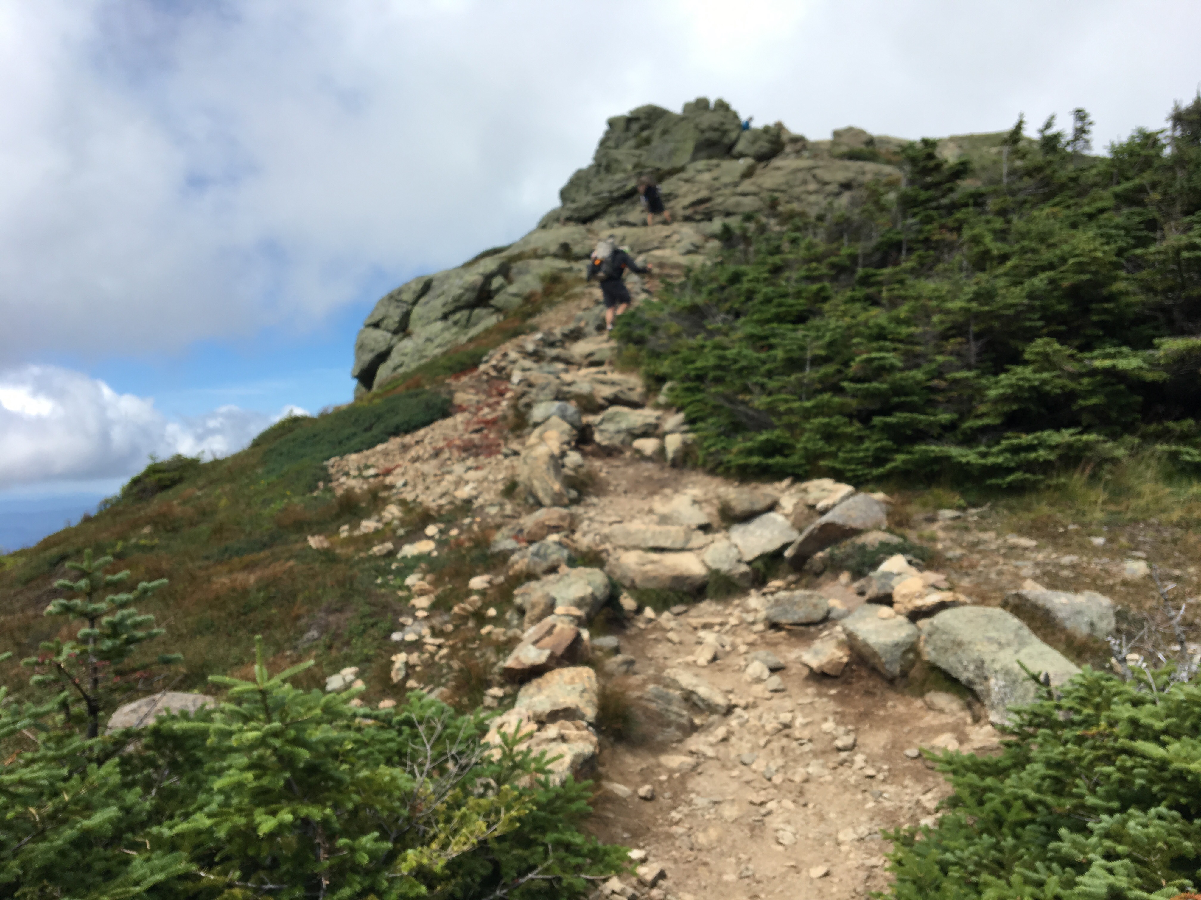 But as the day progressed, I became more tired, and the wind strengthened, to a point where I found it difficult to catch my breath. At this point, Avalanche and I were heading down Lafayette, headed for Mt Garfield. It was a long downhill, and included technical sections that slowed me down considerably. The Whites are full of these technical sections, both while climbing and while descending. They are incredibly wearing, and appear at any time. It’s impossible to estimate how long it will take to walk any distance on any trail.