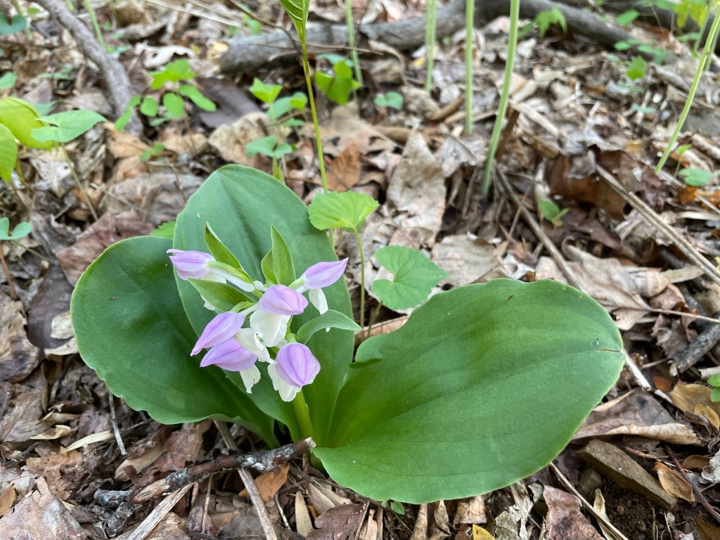 1. 1st maybe showy orchis, 2nd does appear to be trillium.