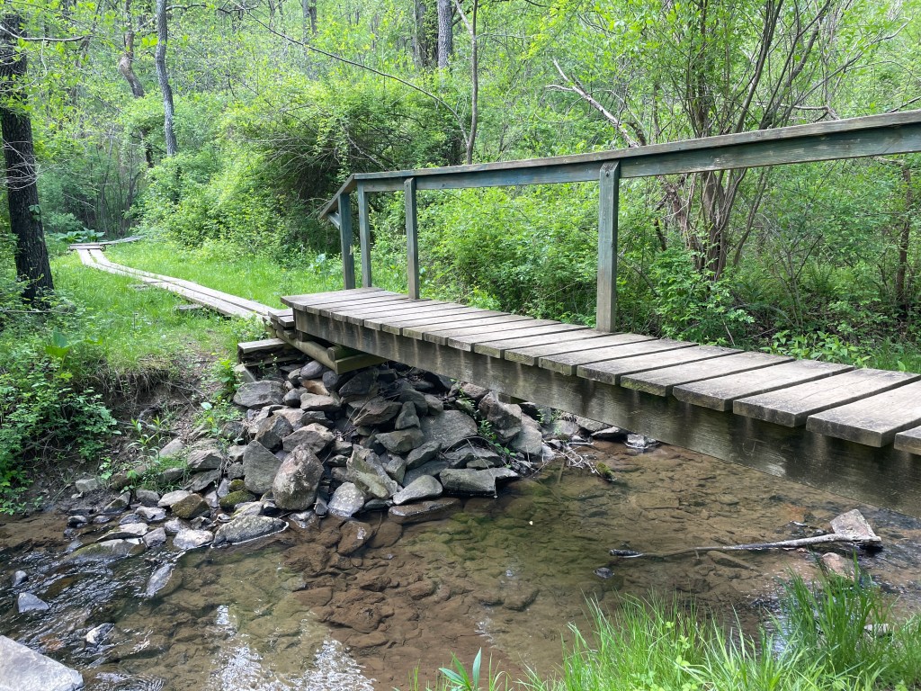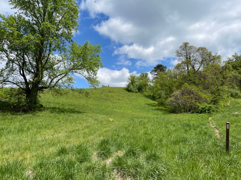 Another 2.5 miles took me to the halfway point of my day, crossing route 55. With 7.5 miles to go, the idea of climbing back out of the gap was disheartening, but with the climb came a change in landscape. I also gave in and turned my audio book back on. So, while visiting with Joe Leaphorn and Jim Chee of the Navajo Tribal Police, the initial climb transitioned into rolling meadows. I passed a NOBO flip-flipper (I’ve met many folks who have started in Waynesboro; I wonder why so many have chosen that a a starting point?), and he talked up the Denton Shelter, how he wished his backyard was as pretty. So I determined to stop there for lunch, leaving 5 miles to complete.